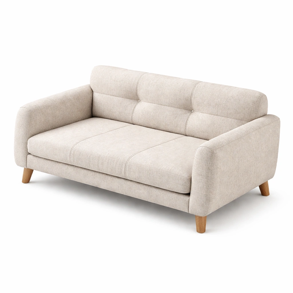 Sofá de 2 plazas tapizado en poliéster beige con patas de madera