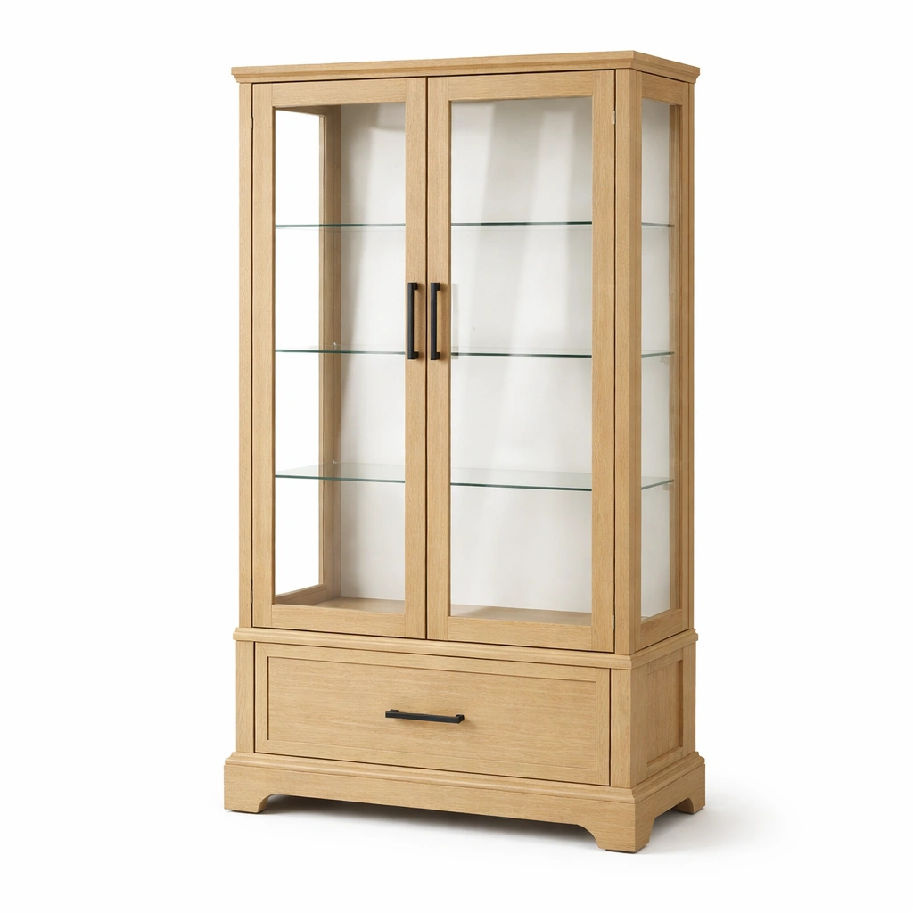 Vitrina de madera de roble con puertas de vidrio templado de 5 mm.
